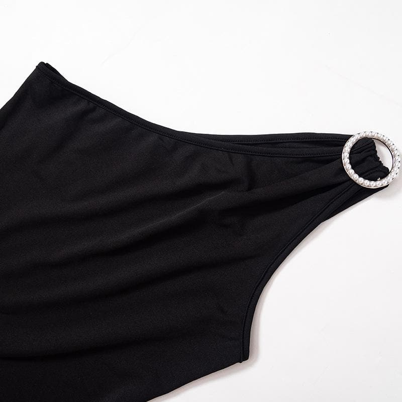 Be the first to review “Buckle one shoulder slit irregular solid maxi dress”